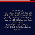▪️سيتم تقييد حركة العجلات بين المحافظات والأقضية باستثناء الحالات الإنسانية