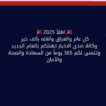 وكالة صدى الاخبار تهنئكم بالعام الجديد وتتمنى لكم 365 يوماً من السعادة والصحة والأمان