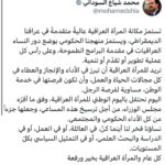 السوداني: مكانة المرأة العراقية تستمر عاليةً متقدمةً في عراقنا الديمقراطي ويستمرّ منهجنا الحكومي بوضع دور النساء العراقيات في مقدمة البرامج الطموحة وعلى رأس كل عملية تطوير أو تقدّم أو تنمية