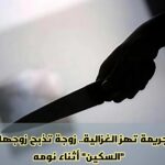 وقال المصدر إن “رجلاً قُتل على يد زوجته بأسلوب الذبح باستخدام سكين، وذلك أثناء نومه ضمن منطقة الهياكل التابعة لمنطقة الغزالية”.