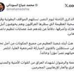 من جميع المكونات من أجل تحرير الأرض مستظلين بالفتوى المباركة للمرجعية العليا لتثمر تضحياتهم نصراً مؤزراً وخالداً